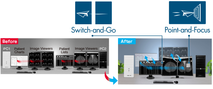 Using the bundled RadiCS LE software, modes can be set to automatically switch to optimal image viewing conditions with the click of a mouse or using the monitor's display mode.